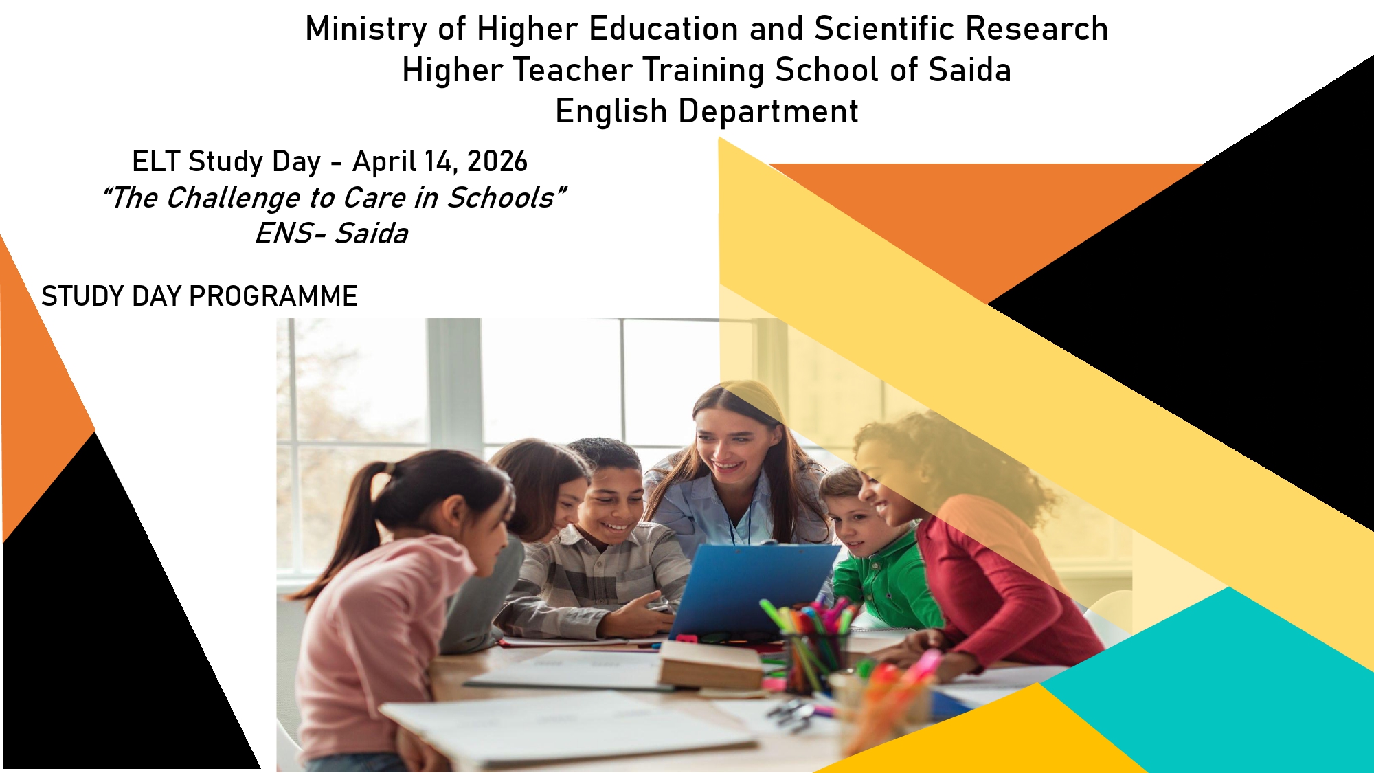 يسرّ المدرسة العليا للأساتدة بسعيدة أن تعلن عن استضافتها لأول يوم دراسي في 14 أبريل 2026. موضوع هذا الحدث العلمي هو: تحدي الرعاية في المدارس